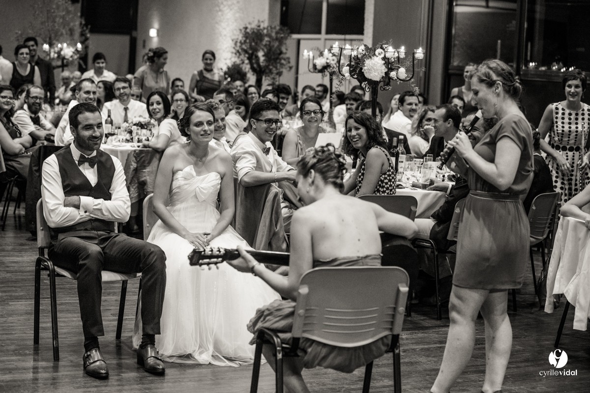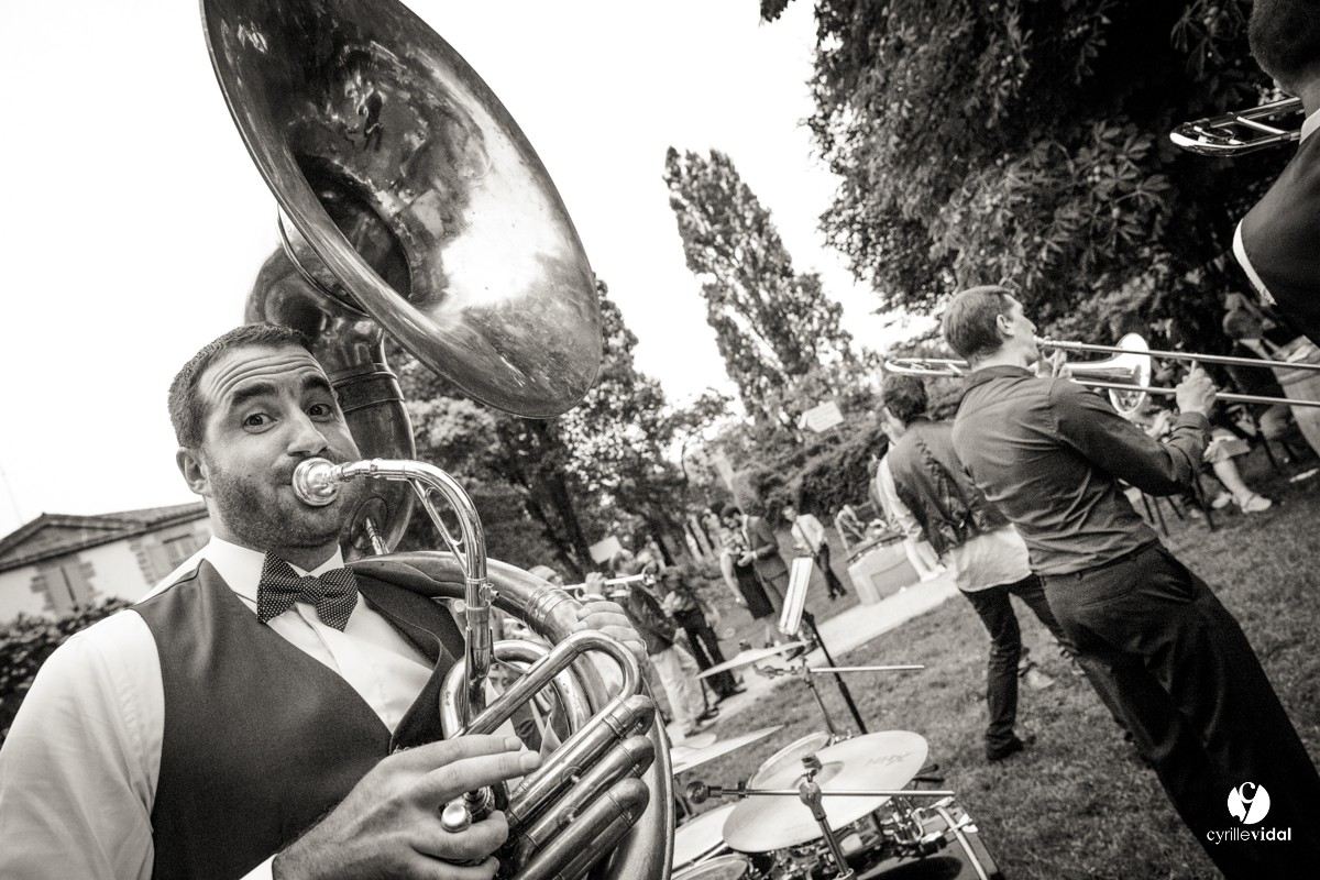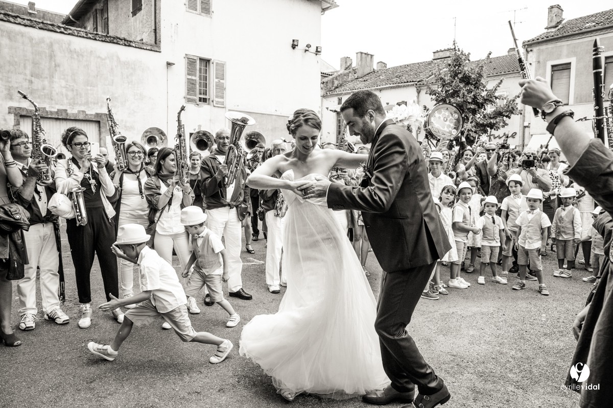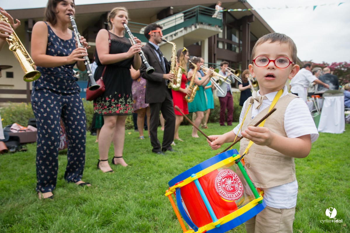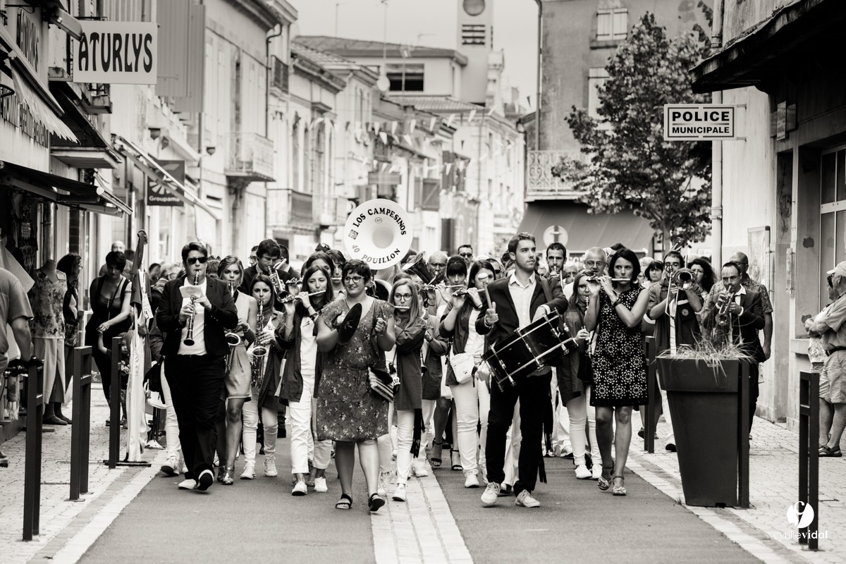 Noémie et Paul sont musiciens et bien évidement la musique était partout pour leur mariage : la Banda Los Campesinos, le Brass Délirium , Los Teoporos … quelle ambiance !!!!!!!!!!!!!!!!!!!!!!! et ce jusqu’au bout de la nuit dans un centre d’animation d’Aire-sur-l’Adour superbement décoré et fleuri par Histoire de fleur by Benoit Saint-Amand.