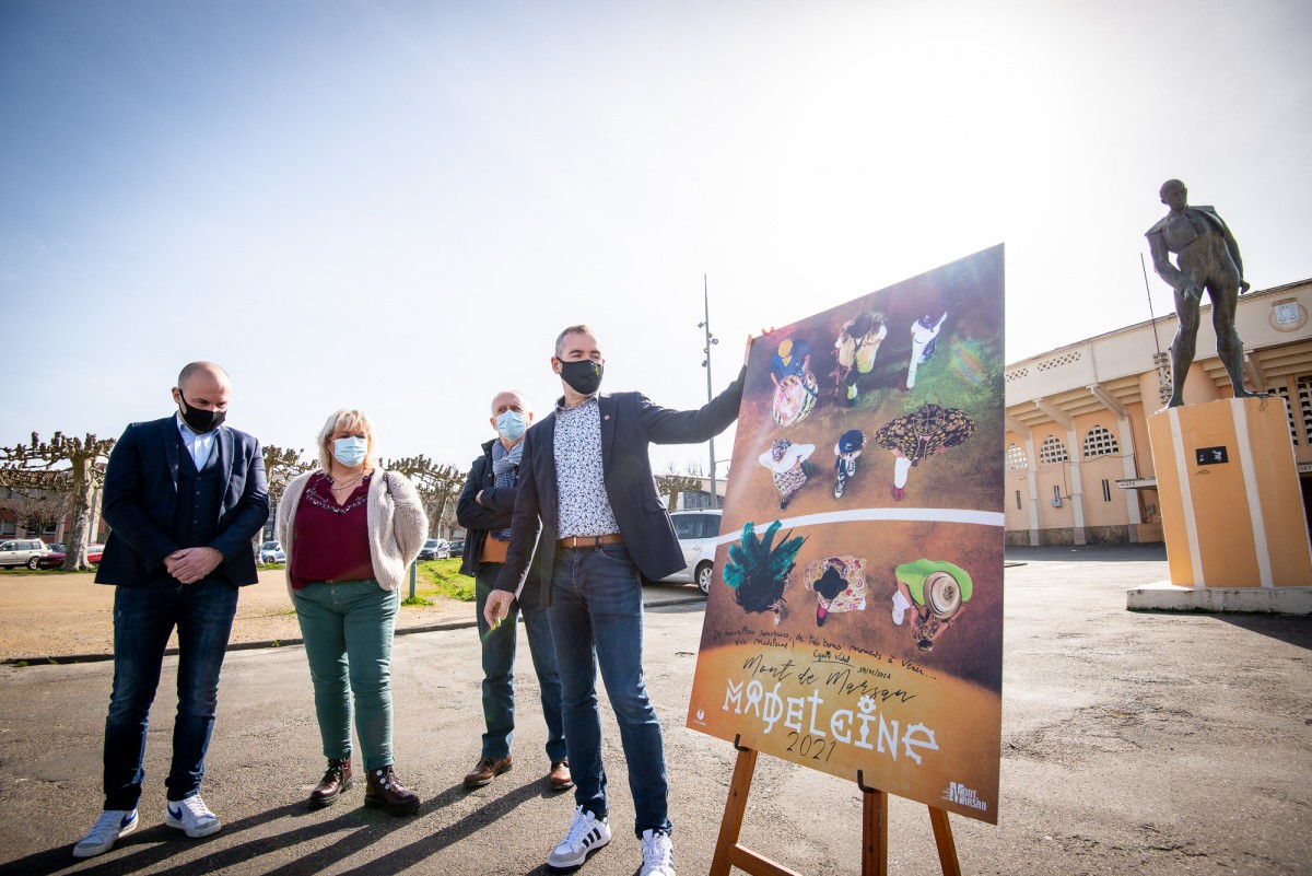 Retour en images sur la présentation de l’affiche des Fêtes de la Madeleine 2021 devant les arènes du Plumaçon à Mont de Marsan ma ville.