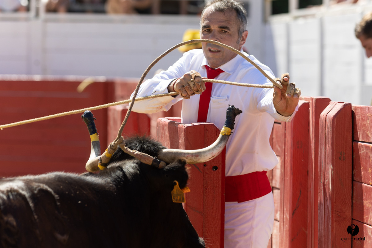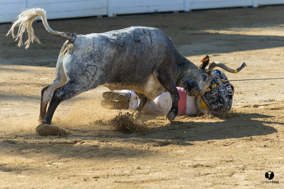 Michel Agruna Ganadéria DAL cuadrilla Christophe Dussau dans son marathon de juillet a tenu son rang malgré la chaleur et les blessures, de quoi satisfaire le public !