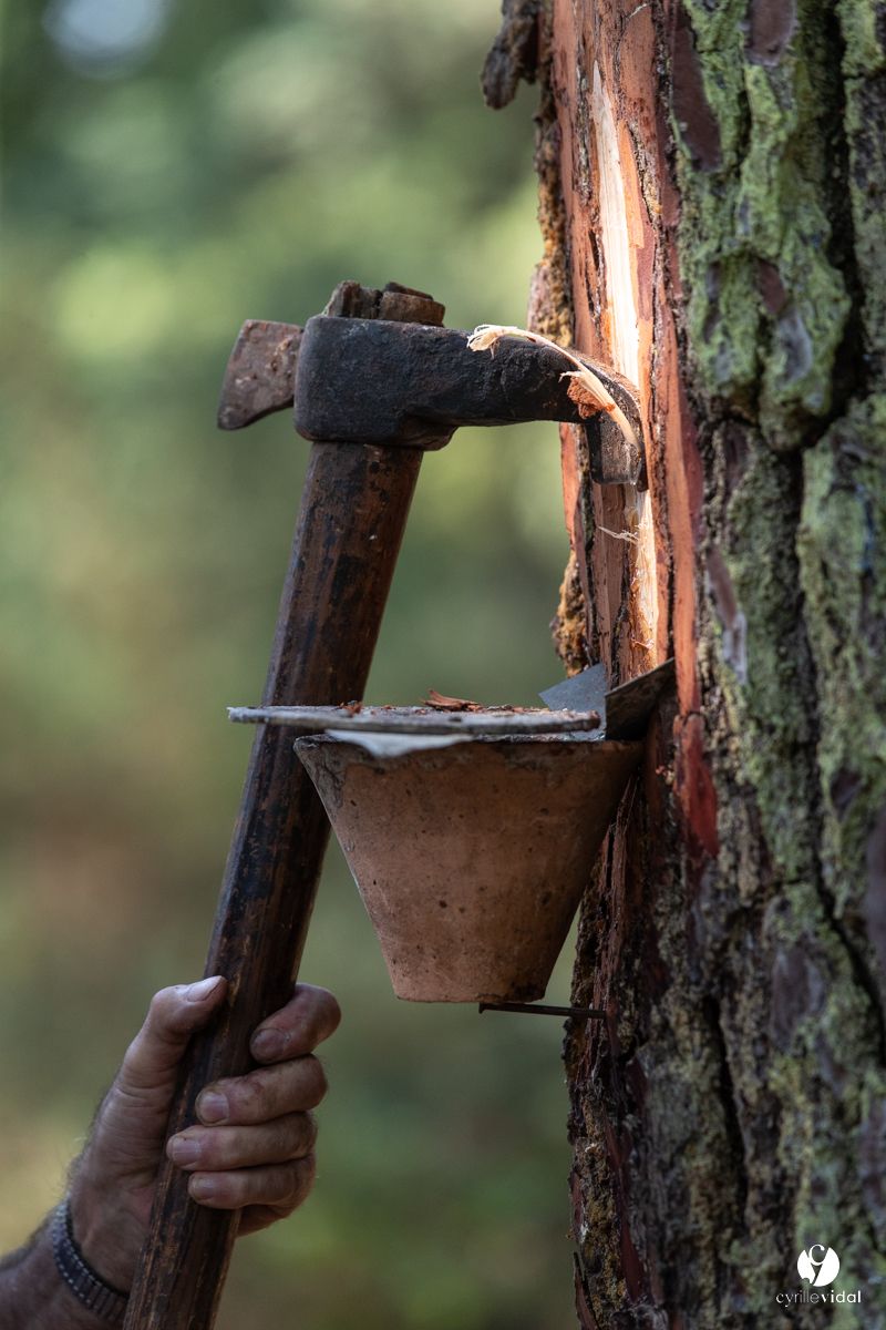 Une poignée d’irréductibles gascons font encore vivre le gemmage par des démonstrations dans différents villages des landes.