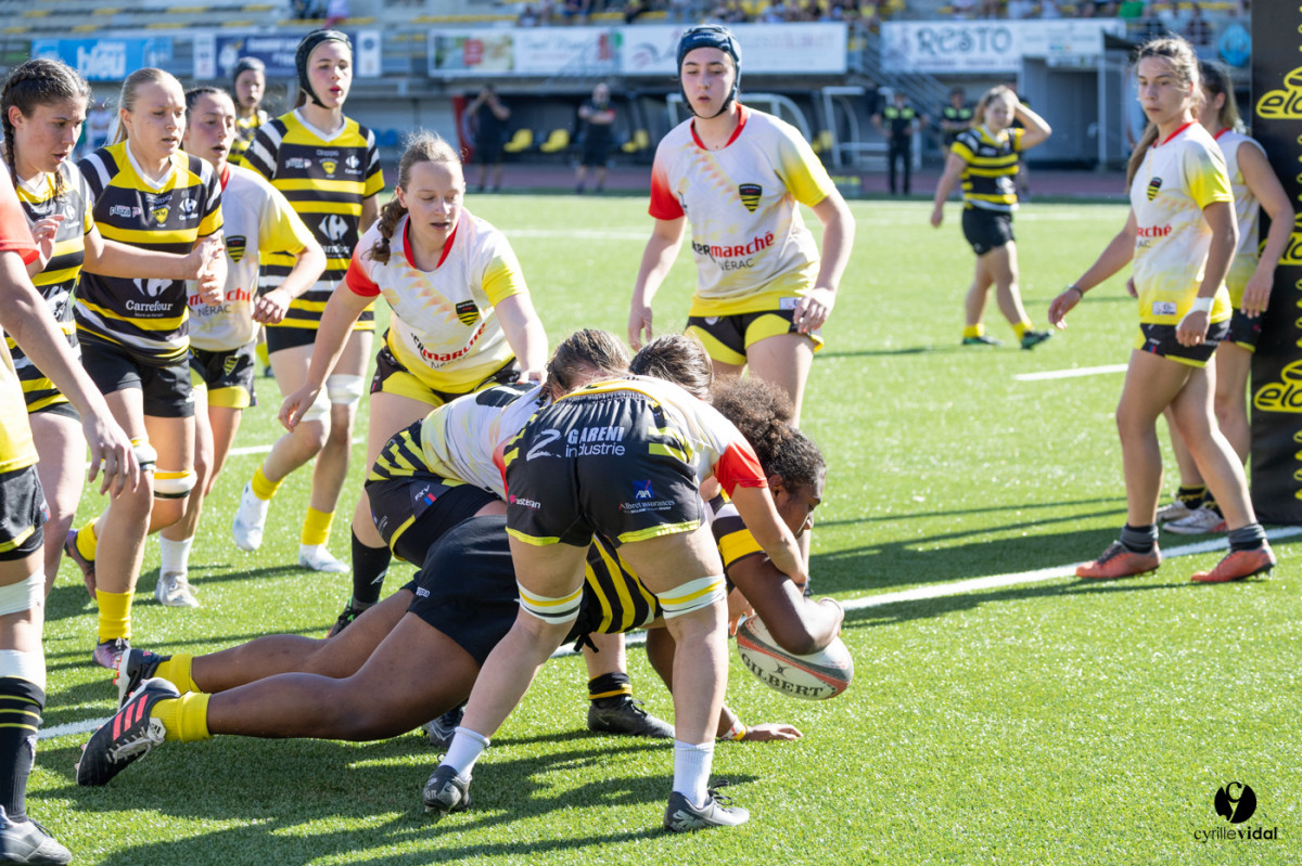 Retrouvez toutes les photos du match sur notre site : https://www.studiovidal.net/folio/3728/20240414-stade-montois-rugby-cadettes-a-xv-nerac.html