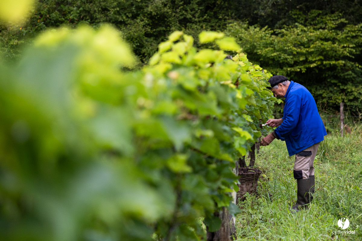 Un rituel simple et authentique : la taille du raisin au couteau, puis le foulage directement dans les vignes, comme autrefois.
